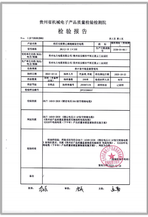 下一篇:鋁芯交聯(lián)聚乙烯絕緣聚氯乙烯護(hù)套電力電纜 檢驗報告